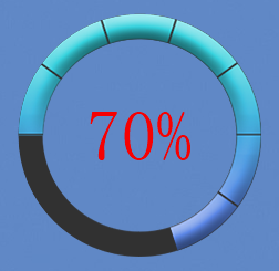 如圖2/圖3所示,設(shè)置起始值/終止值為0-100,對應(yīng)的起始角度/終止角度為450-270。變量由起始值向終止值變化時(shí),前景圓環(huán)沿順時(shí)針方向遞增。使用邊緣圓角,使得邊緣過渡更加圓滑。指定背景色和前景色即可。無需其他素材。